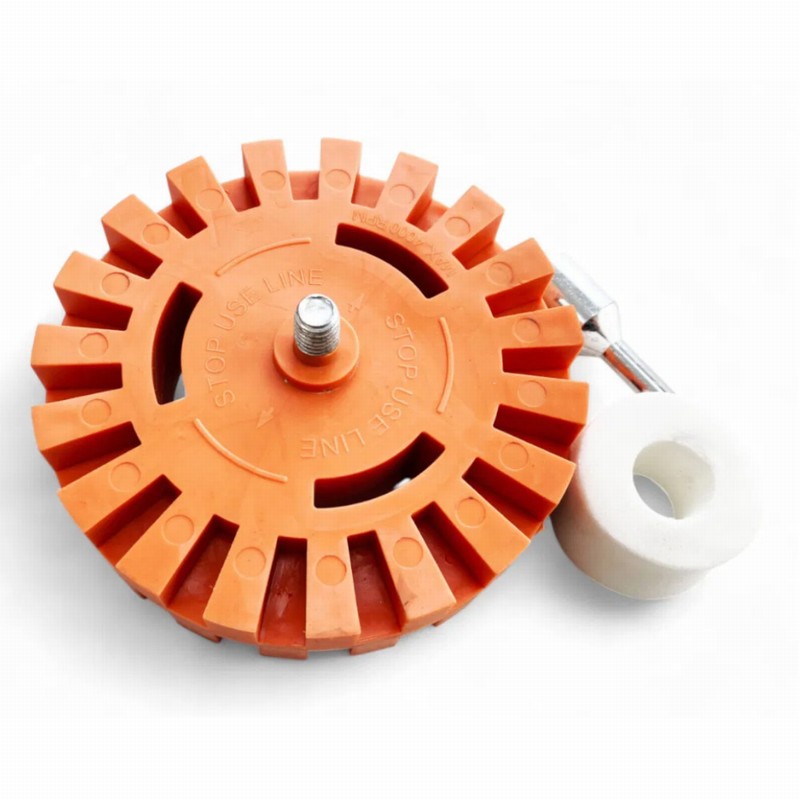 This 4-inch pinstripe decal eraser wheel is designed for removing decals and adhesive residues.