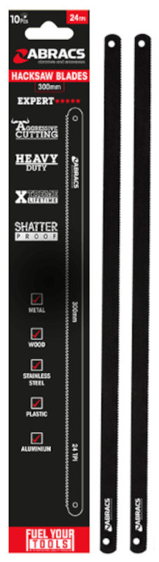 10 x 300mm Abracs 24tpi Bi-Metal Hacksaw Blades