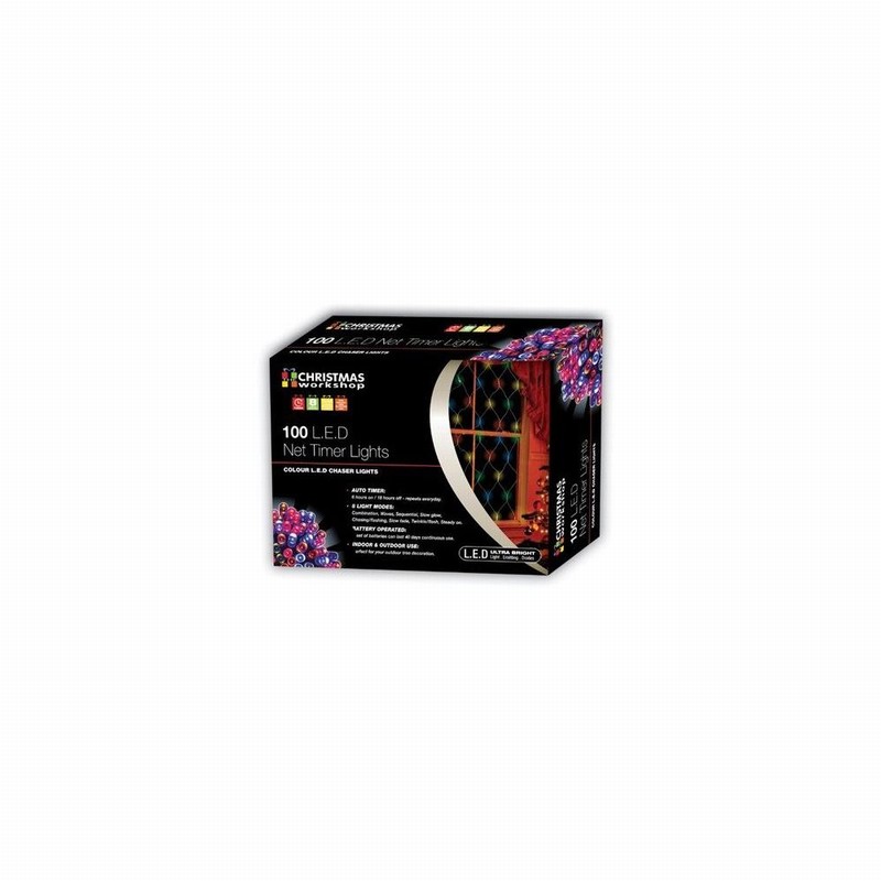 This amazing set of LED battery operated net lights come in a multi-coloured style at an area of 1.5×1.5m and hold 100 individual LED lights. Lead wire length 1m.