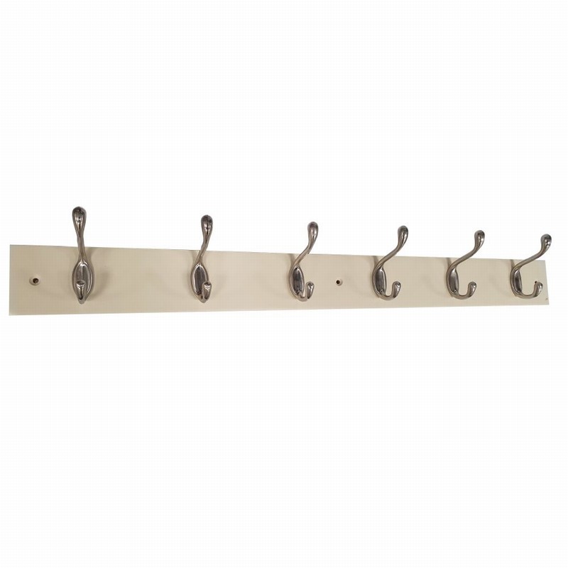 6 Hook Deluxe Hat and Coat Rack on Cream Base with Satin Nickel Coloured Hooks