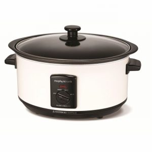 Morphy Richards 3.5L White Slow Cooker – The Sear and Stew Slow Cooker allows you to sear the meat in the same pan. Searing meat in the cooking pan means that the juices from the meat combine with the rest of the ingredients creating richer fuller flavours in your dishes.