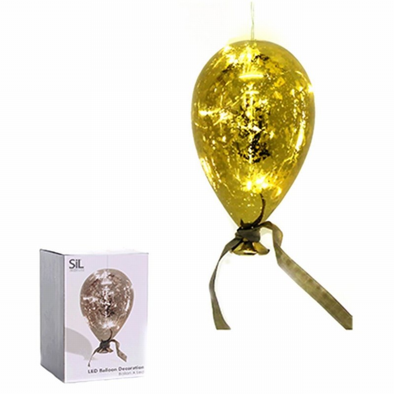 Gold glass effect hanging balloon decoration. A fabulous twist of style for the humble party balloon with beautiful glowing white LED light from within creates a lovely effect.