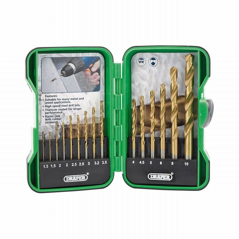 Draper 15 Piece HSS Titanium Nitride Coated Drill Bit Set in Metal Box