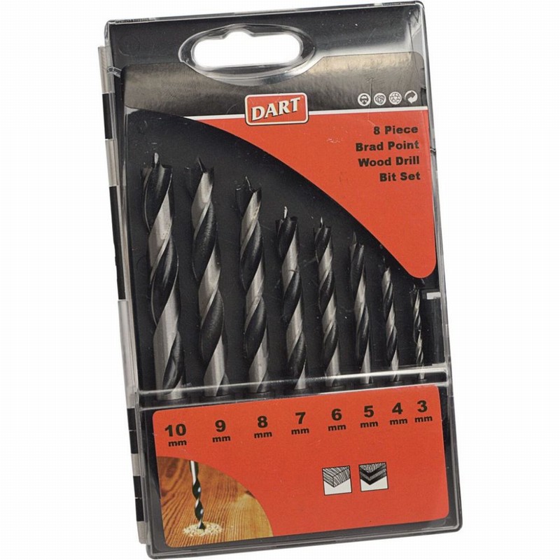 Dart 8 Piece Brad Point Drill Bit Set for Wood