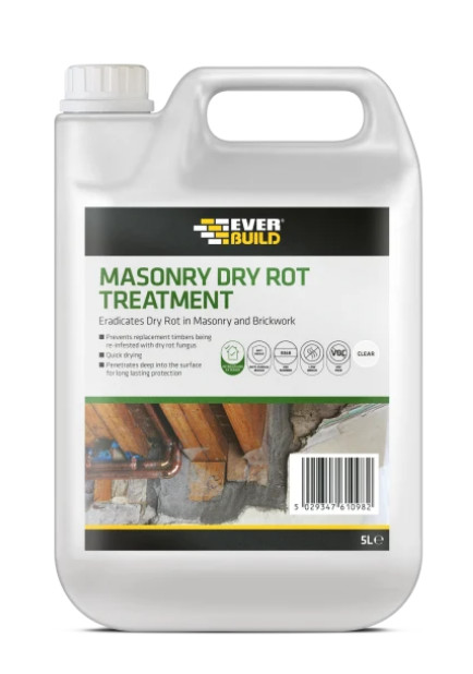 Masonry Dry Rot Treatment is a ready to use treatment for the eradication of dry rot in masonry and brickwork. The added biocide helps to protect against re-infestation. Low Solvent. Low Odour. Low VOC. Micro fine actives penetrate deep into the wood.