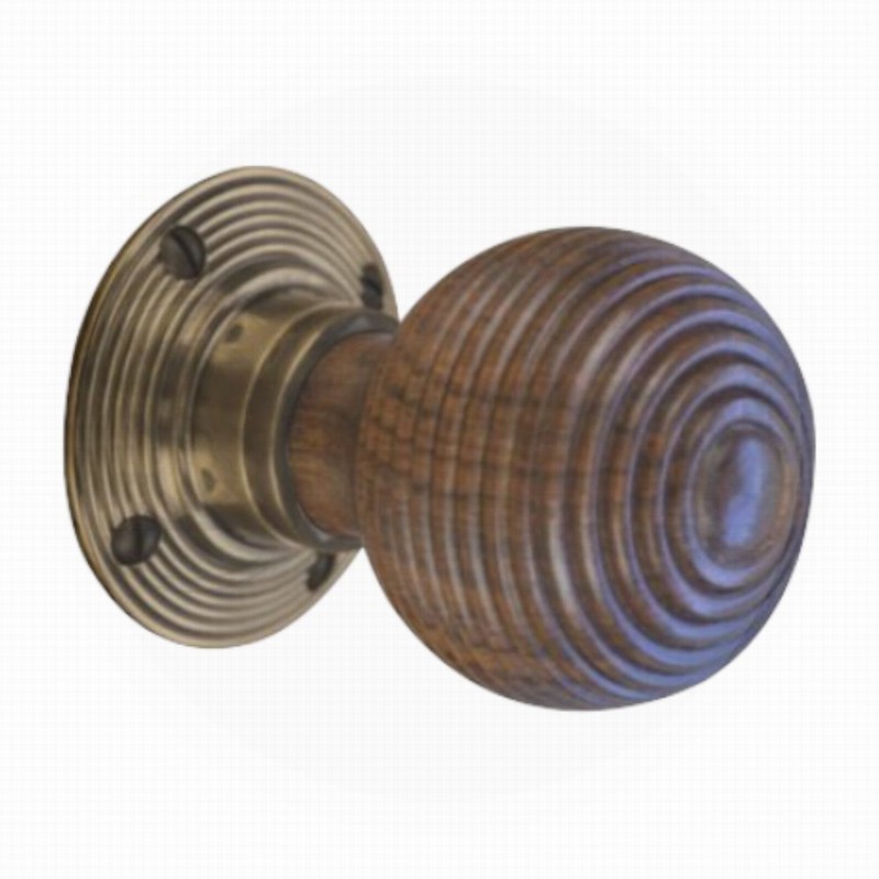 55mm Rosewood Beehive Wooden Mortice Knob with Antique Brass Plate