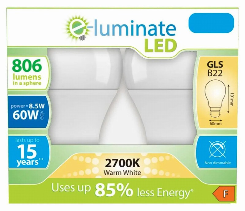 Lamp Low Energy LED GLS Pattern 8.5>60Watt x2 BC 6500K DL