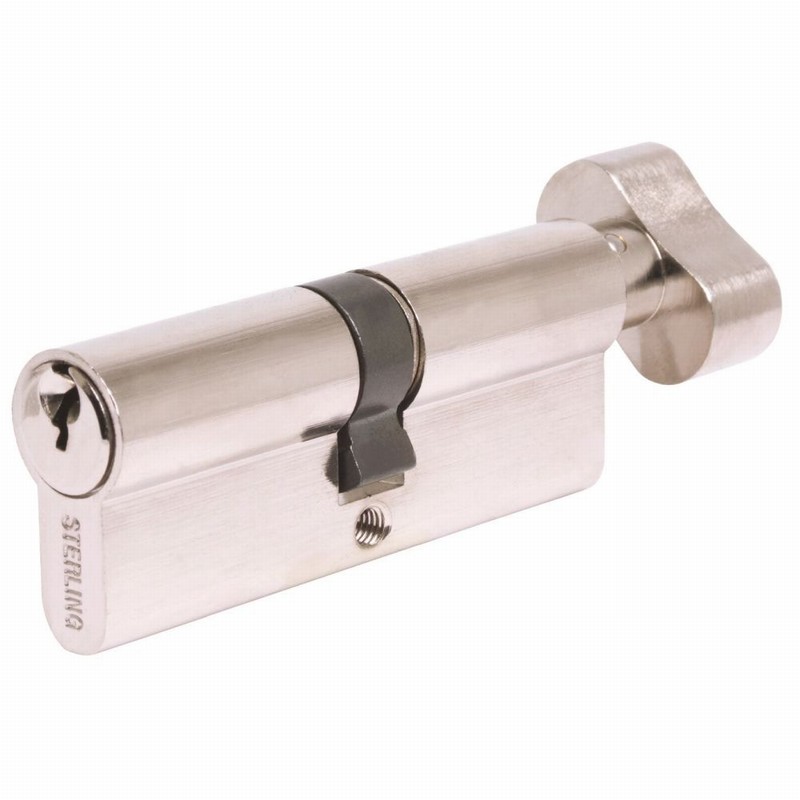 Sterling 35mm x 35mm Nickel Thumb Turn Europrofile Lock – Solid brass body and plug, 5 pin tumbler locking mechanism, supplied with 3 nickel plated keys.