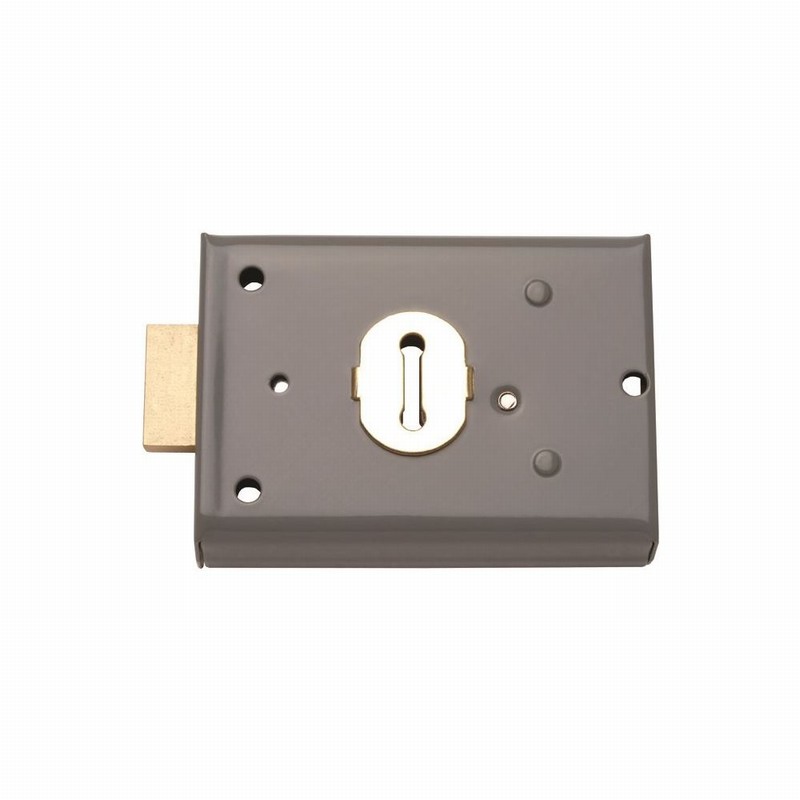 Sterling 102mm x 76mm 4″ x 3″ Grey Rim Deadlock – Key operated deadbolt, suitable for inward and outward opening doors, 2 keys and fixings supplied