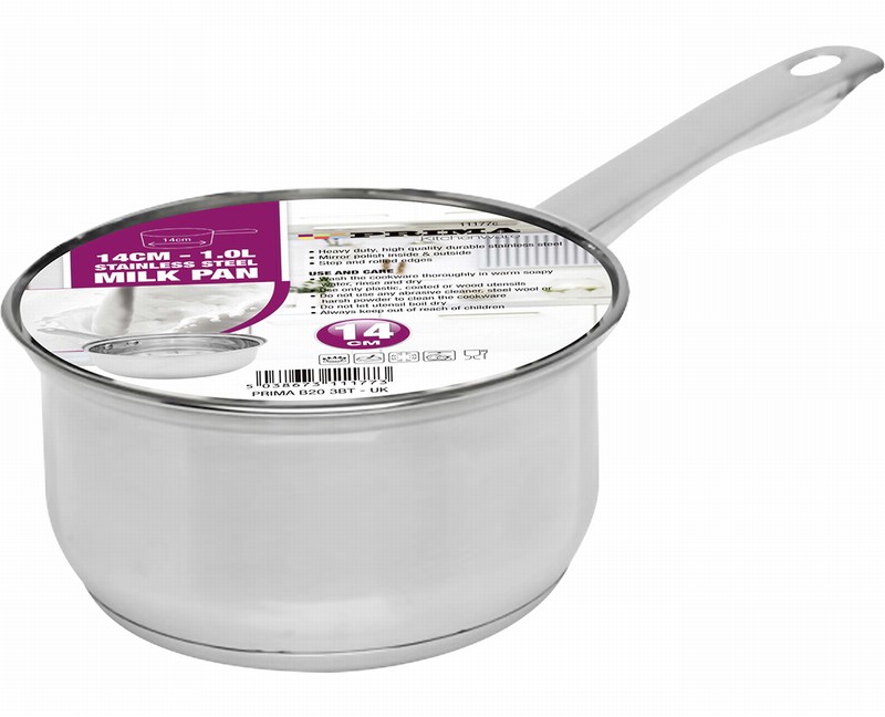 14cm Prima Stainless Steel Milk Pan with Encapsulated Base for Induction Hobs