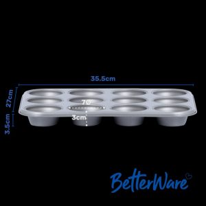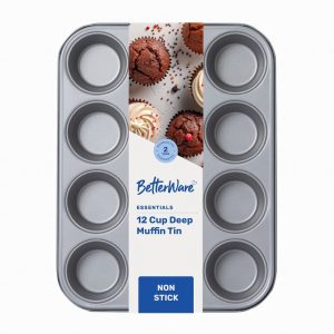 Bake generous muffins or cupcakes with this deep 12-cup tray from the Betterware Essentials range. Featuring a non-stick coating for easy release, it’s dishwasher, fridge, and freezer safe. Comes with a 2-year guarantee for added confidence.