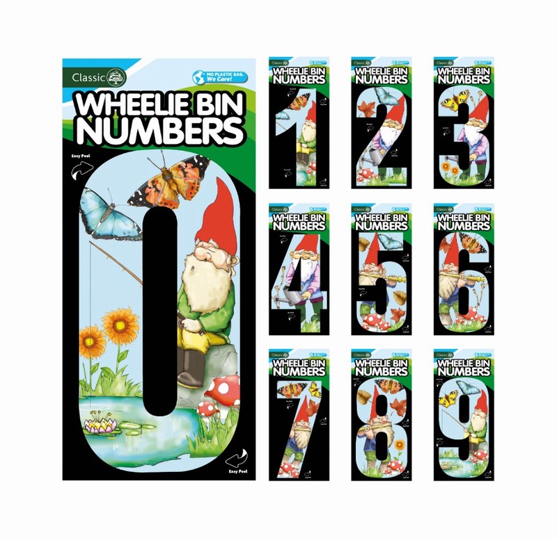 175mm No. 0 Self Adhesive Gnome Design for Wheelie Bins