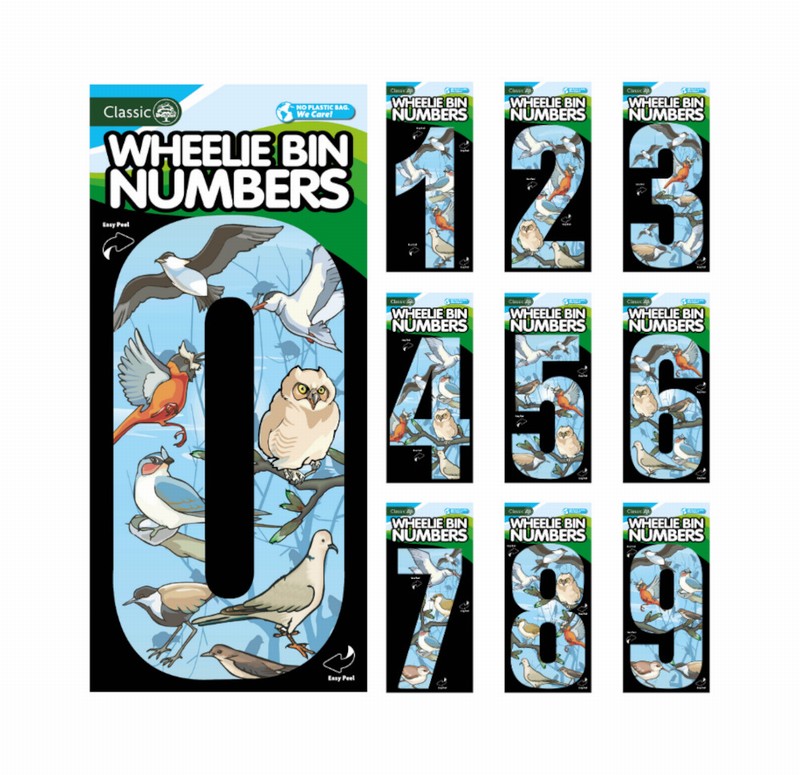 175mm No. 3 Self Adhesive Bird Design for Wheelie Bins