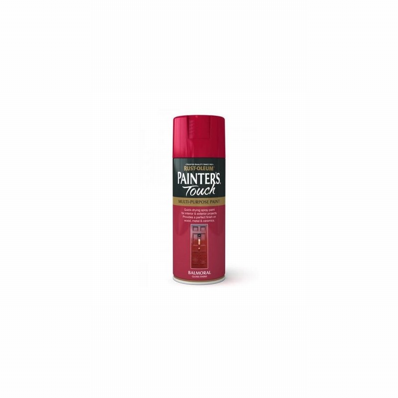 400ml Rustoleum Painters Touch Balmoral Gloss Spray Paint – A multi-purpose decorative and protective aerosol spray paints ideal for everyday projects. Typical applications include painting of furniture, cabinets, doors, frames, vases, baskets, trim and general bric-a-brac. High quality, fast-drying formulation is suitable for indoor and outdoor use, giving a smooth, durable finish.