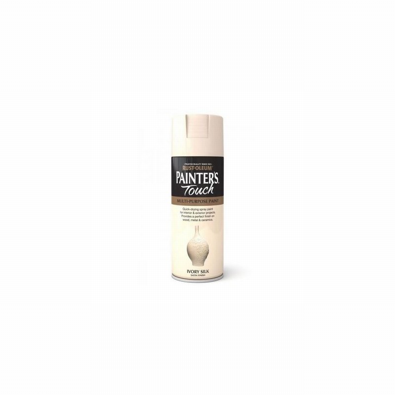 400ml Rustoleum Painters Touch Ivory Silk Satin Spray Paint – A multi-purpose decorative and protective aerosol spray paints ideal for everyday projects. Typical applications include painting of furniture, cabinets, doors, frames, vases, baskets, trim and general bric-a-brac. High quality, fast-drying formulation is suitable for indoor and outdoor use, giving a smooth, durable finish.
