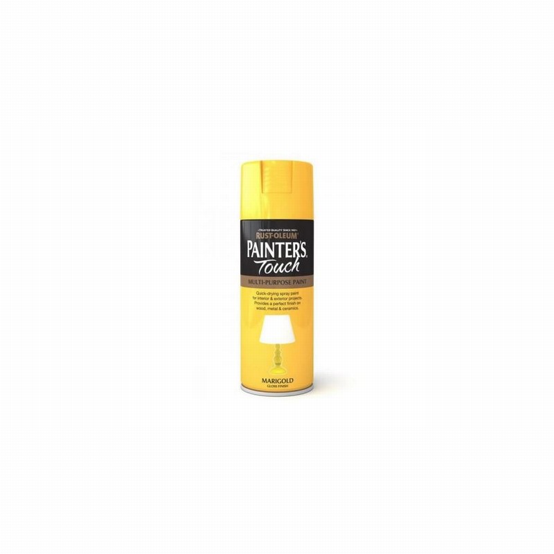400ml Rustoleum Painters Touch Marigold Gloss Spray Paint – A multi-purpose decorative and protective aerosol spray paints ideal for everyday projects. Typical applications include painting of furniture, cabinets, doors, frames, vases, baskets, trim and general bric-a-brac. High quality, fast-drying formulation is suitable for indoor and outdoor use, giving a smooth, durable finish.