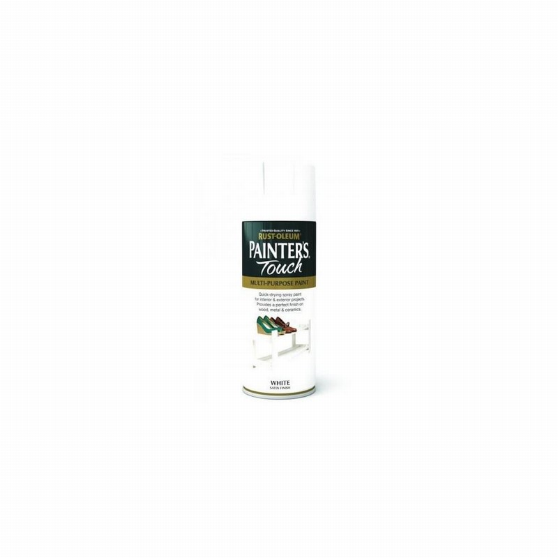 400ml Rustoleum Painters Touch White Satin Spray Paint – A multi-purpose decorative and protective aerosol spray paints ideal for everyday projects. Typical applications include painting of furniture, cabinets, doors, frames, vases, baskets, trim and general bric-a-brac. High quality, fast-drying formulation is suitable for indoor and outdoor use, giving a smooth, durable finish.
