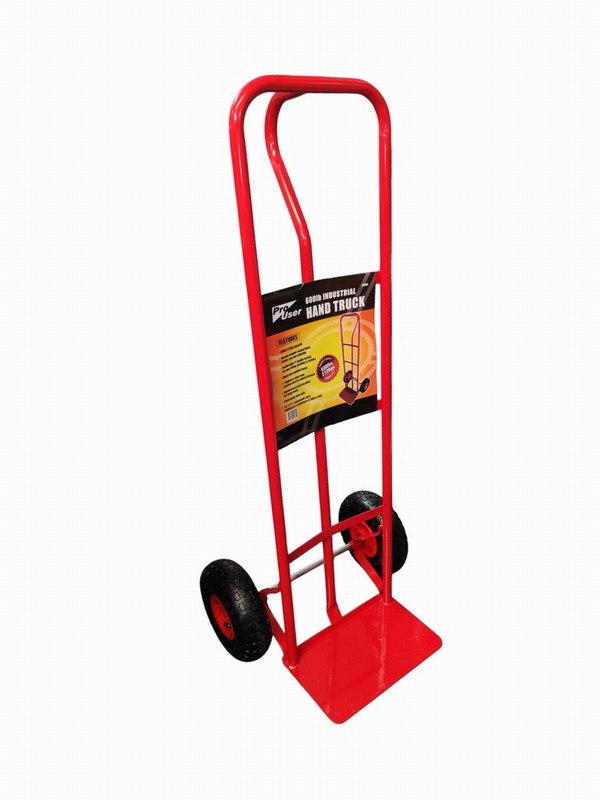 This durable industrial truck comes with a powder coated finish which will resist rust & chipping; a comfortable ‘P’ handle design for easy lifting, pushing & pulling; a heavy duty welded frame manufactured from 1” diameter steel tubing for added strength; a commercial sized toe plate to allow bigger loads to be carried; a solid heavy duty axle & pneumatic tyres can be inflated to a maximum of 30psi cold.