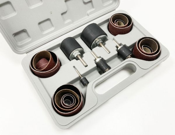 This comprehensive drum sander set is designed for precision sanding and shaping, making it ideal for woodworking, metalworking, and general finishing applications.