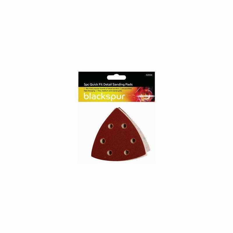 90mm Assorted Triangle Sandpaper Pad Set – These pre-punched, fast changing quick fit sanding pads come in fine, medium & course grits & will fit most popular brands of detail sander.