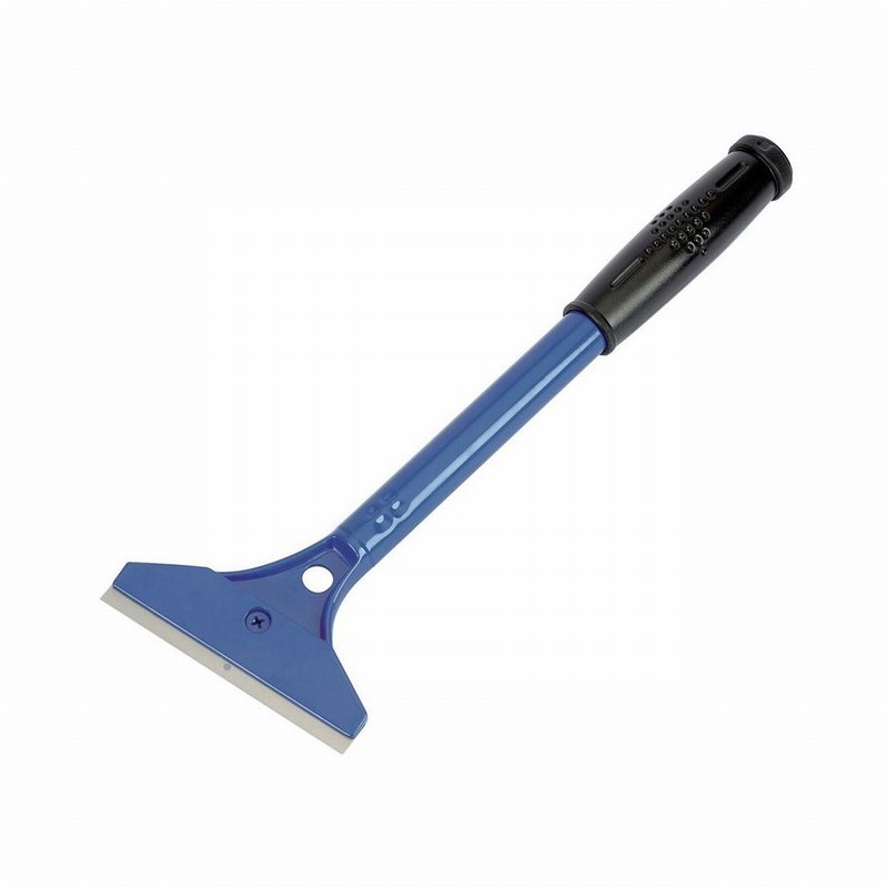 Long handled scraper with angled head, which provides extra leverage, ideal when stripping large areas of wallpaper, flaking paint or tiles. Fitted with a 100mm wide, two-sided reversible blade, zinc alloy body and soft grip handle.