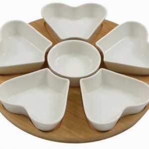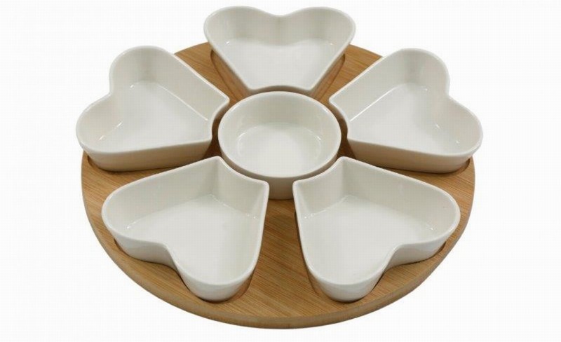 6 Dish Round Bamboo and Ceramic Serving Board for Tapas