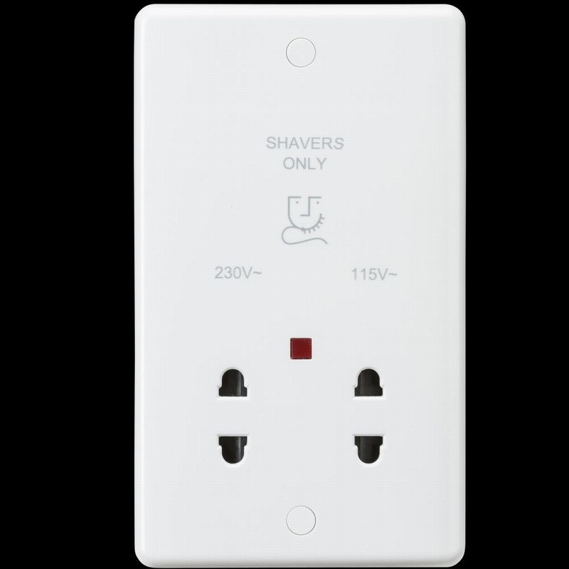 Knightsbridge Curved Edge 2 Gang Dual Voltage Shaver Socket with Neon