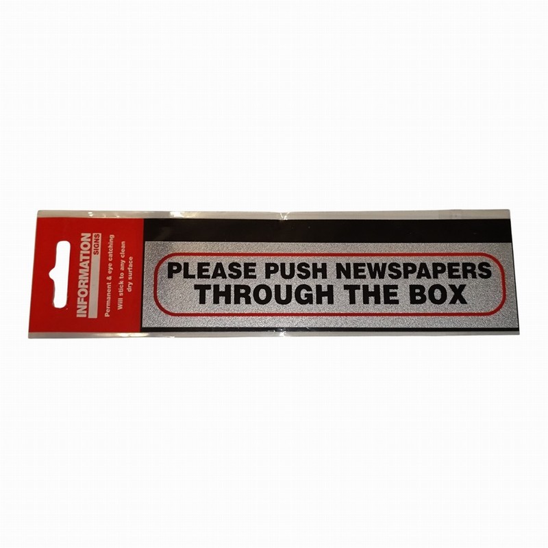 Self adhesive ‘Please Push Newspaper Through The Box’ sign