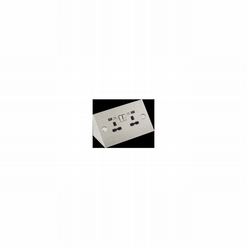 2 Gang Brushed Chrome Under Cabinet Sockets with USB