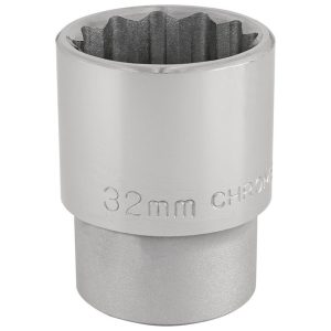 Expert Quality, 12 point socket manufactured from chrome vanadium steel that’s hardened and tempered with a polished finish. Each socket has a knurled ring for extra grip.