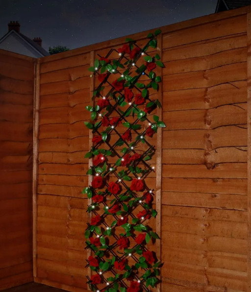 This Solar Garden Trellis from Gardenwize is ideal for placing on fences and walls in your garden area. It has artificial leaves and flowers woven onto a wood-effect frame yet it has been cleverly crafted to give it that organic look & feel.