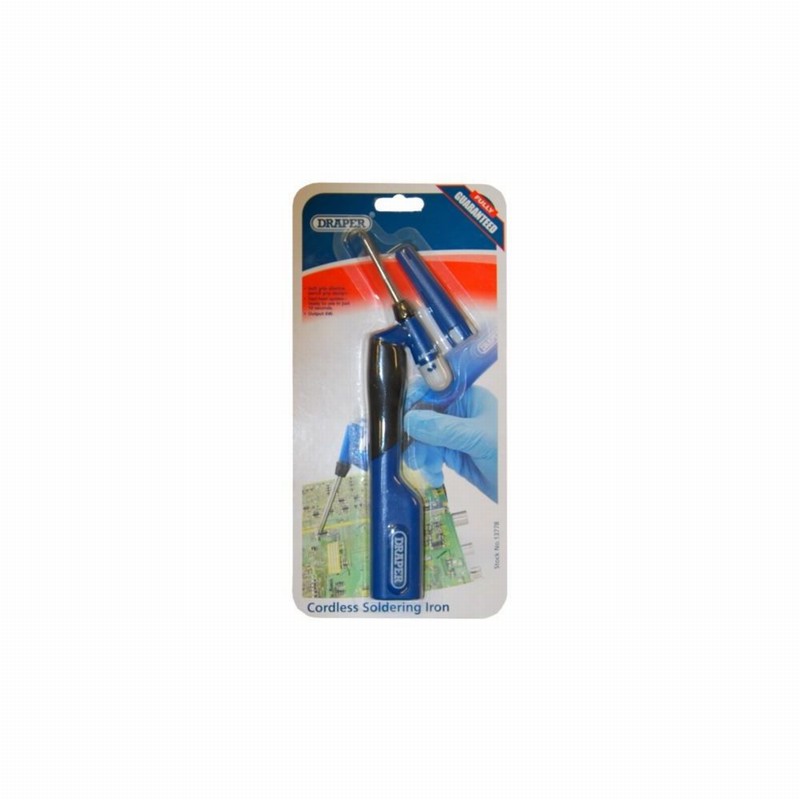 Draper Battery Operated Soldering Iron – Offset head for visibility, LED power indicator, dual action safety switch to prevent accidental switch on. 90 mins average battery life. Requires 4 x AA batteries (not supplied)