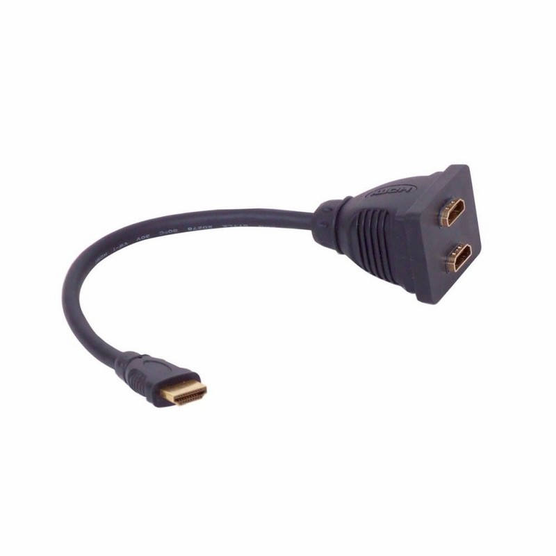 HDMI plug to 2 x HDMI sockets with 15 cm lead. Ideal for connecting TV equipment.