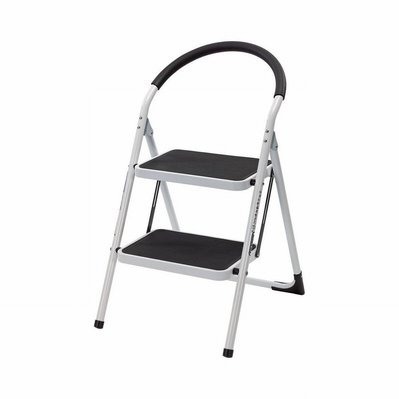 High strength steel construction with two anti slip treads and soft grip safety rail.