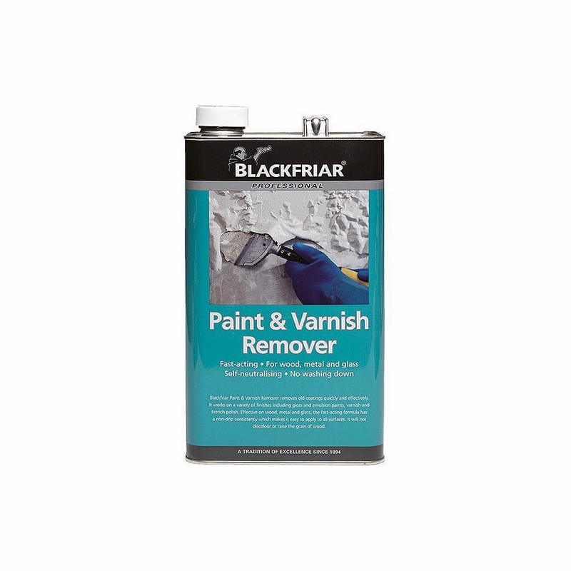 5L Blackfriars Paint and Varnish Remover – Blackfriars paint and varnish remover removes old coatings quickly and effectively. It works on a variety of finishes including gloss and emulsion paints, varnish and French polish. Effective on wood, metal and glass, the fast-acting formula has a non-drip consistency which makes it easy to apply to all surfaces. It will not discolour or raise the grain of wood.