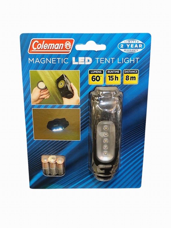 This Coleman Magnetic LED Tent Light is a compact, hands-free lighting solution designed for camping and outdoor use. With magnetic mounting and included batteries, it offers convenient illumination inside tents or shelters.