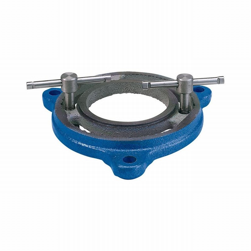 Swivel bases for use with Engineers Bench Vices Stock Nos. 44506 and 45783. Manufactured from good quality grey cast iron with three fixing legs and two clamping blocks.