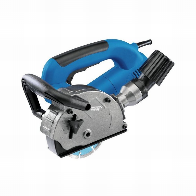 Expert Quality, Adjustable cutting width 8 – 28mm, Adjustable cutting depth 10 – 30mm, Soft start, Dust extraction outlet, Supplied with 2 x diamond blades, side handle, chisel and 3M cable with BS plug.