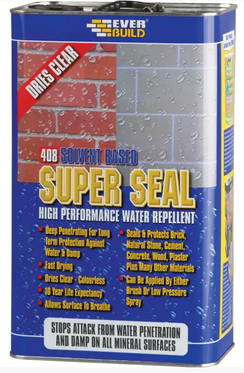 408 Super Seal is a spirit based transparent water repellent, formulated to prevent attack by water penetration on brick, stone, concrete, plaster, rendering etc.