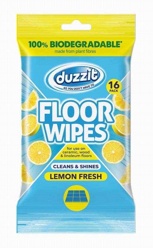 Duzzit 16 x lemon scented biodegradeable floor wipes