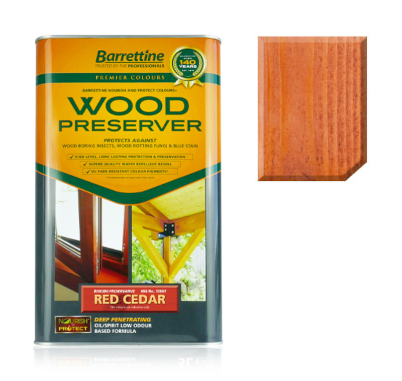 A high-quality, low odour, oil based wood preserver that is deep penetrating. Barrettine wood preserver is used for wood protection against wood-destroying fungi (wet rot), wood discolouring fungi and wood-boring insects. This wood preserver provides a semi-transparent matt/satin finish allowing the natural wood texture to be visible, it can be used on pressure-treated wood, treated timber or untreated wood. This high-quality wood treatment is suitable for rough, sawn or smooth timber, does not require over sealing for wood protection. No subsequent topcoat is required unless for aesthetic purposes. Barrettine Wood Preserver is for outdoor use and also for use on windows/frames, external doors/frames (internal & external sections). The Barrettine Wood Preserver Clear can also be used on structural timbers in unoccupied areas such as floor joists.